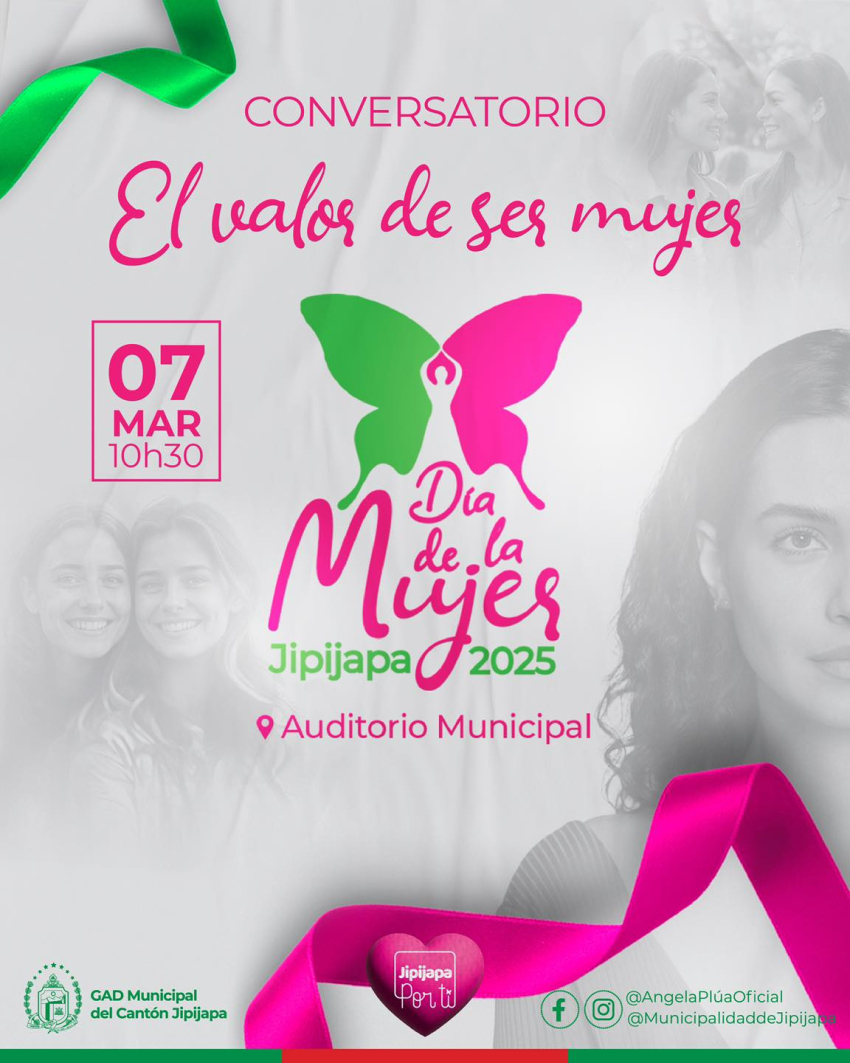 Te invitamos al conversatorio “El valor de ser mujer”, un espacio para conmemorar la fuerza, el compromiso y la esencia de cada mujer jipijapense en el salón auditorio a partir de las 10H30.