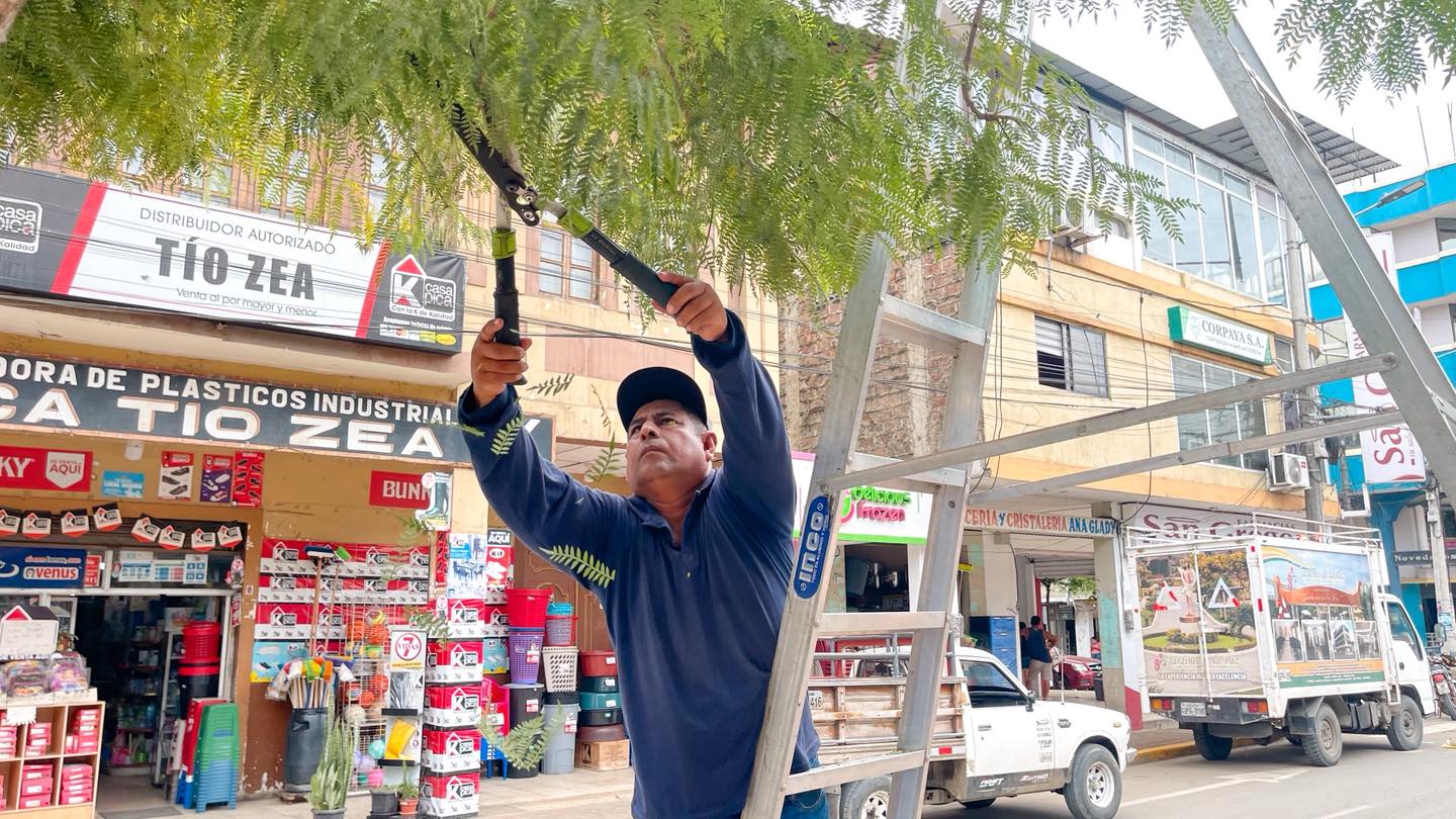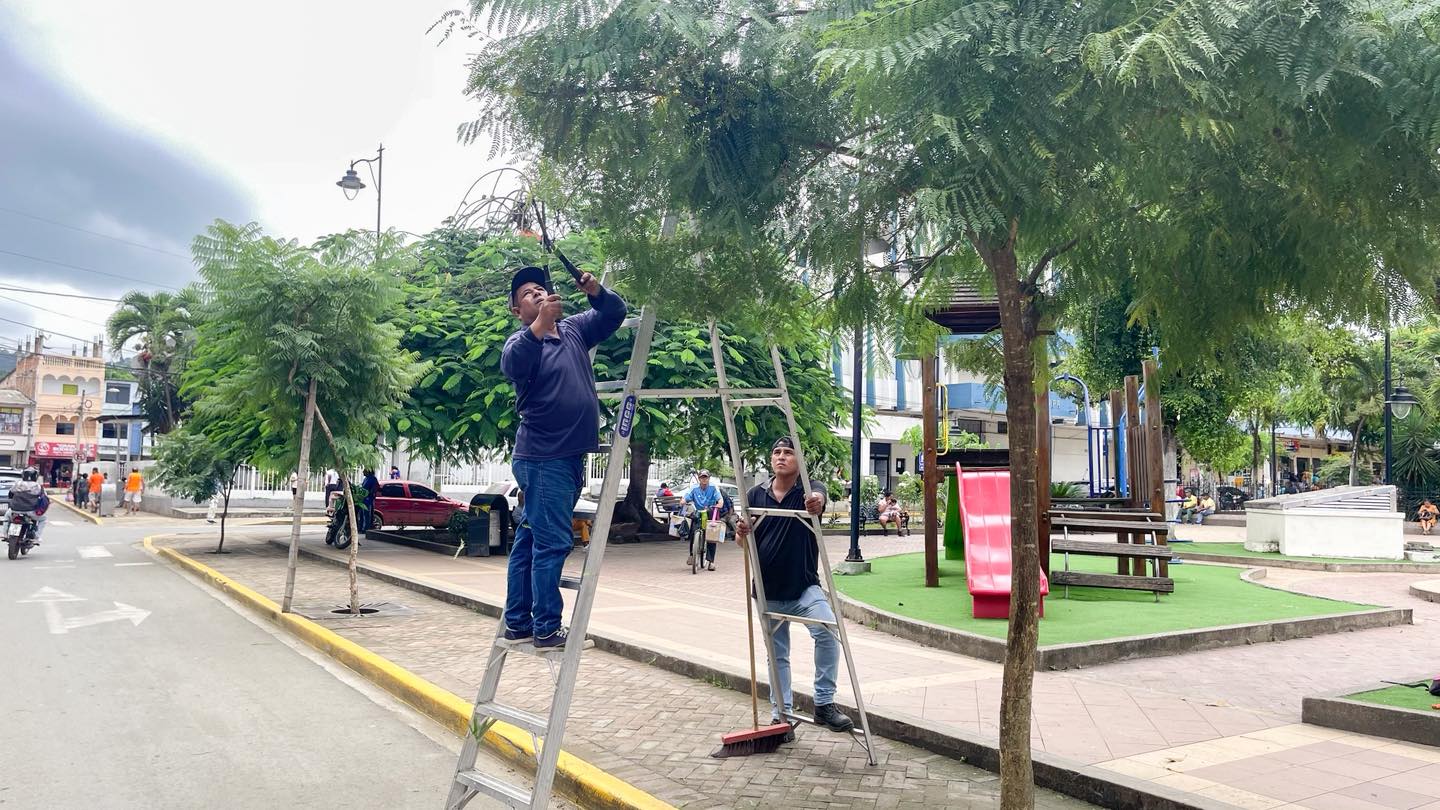 Realizamos trabajos de poda de árboles en el centro de Jipijapa con el objetivo de garantizar la seguridad peatonal, mejorar la visibilidad y mantener un entorno limpio y ordenado.