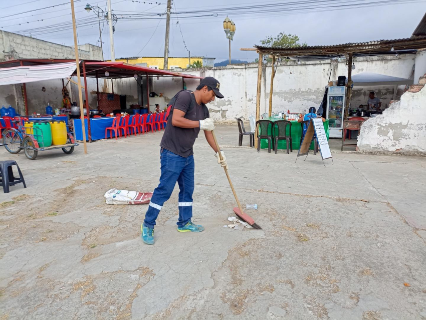Como parte de las actividades por las Fiestas de Fundación, se realizó una jornada de limpieza en el área de la feria para brindar a la ciudadanía un espacio limpio y agradable.