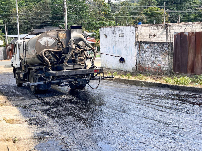 La rehabilitación vial en la parroquia ya alcanza un 76% de avance. Actualmente se ejecutan trabajos de imprimación en las calles principales (1, 2, 3 y 4) paso previo a la colocación de la carpeta asfáltica.