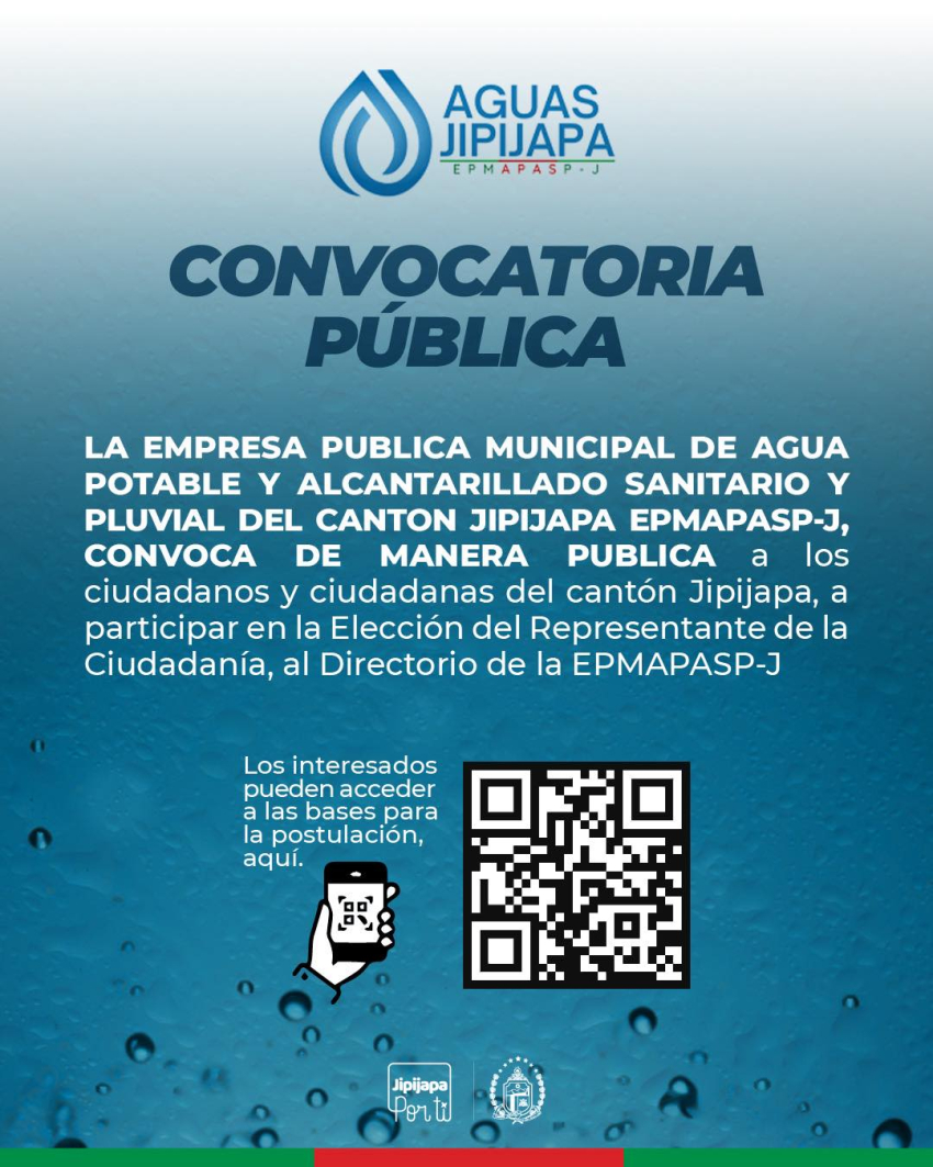 La Empresa Pública Municipal de Agua Potable y Alcantarillado Sanitario y Pluvial de Jipijapa (EPMAPASP-J) invita a la ciudadanía a participar en la Elección del Representante de la Ciudadanía ante el Directorio de la institución.
