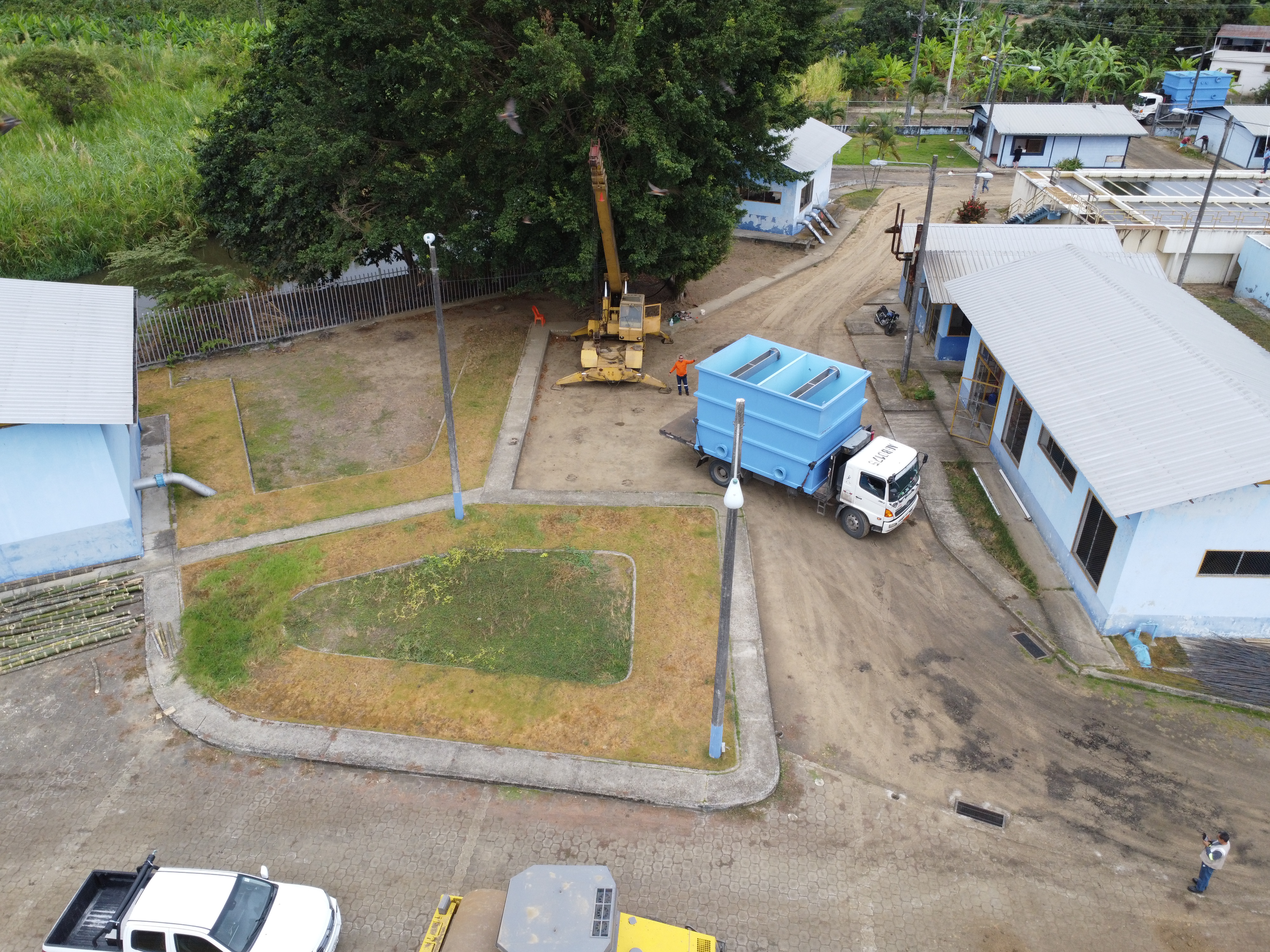 Asimismo, se visitó la estación Cazalagarto en el cantón Santa Ana, donde constaron la llegada de los módulos de sedimentación fabricados en la ciudad de Cuenca, mientras se ejecuta la construcción de las bases que los recibirán.