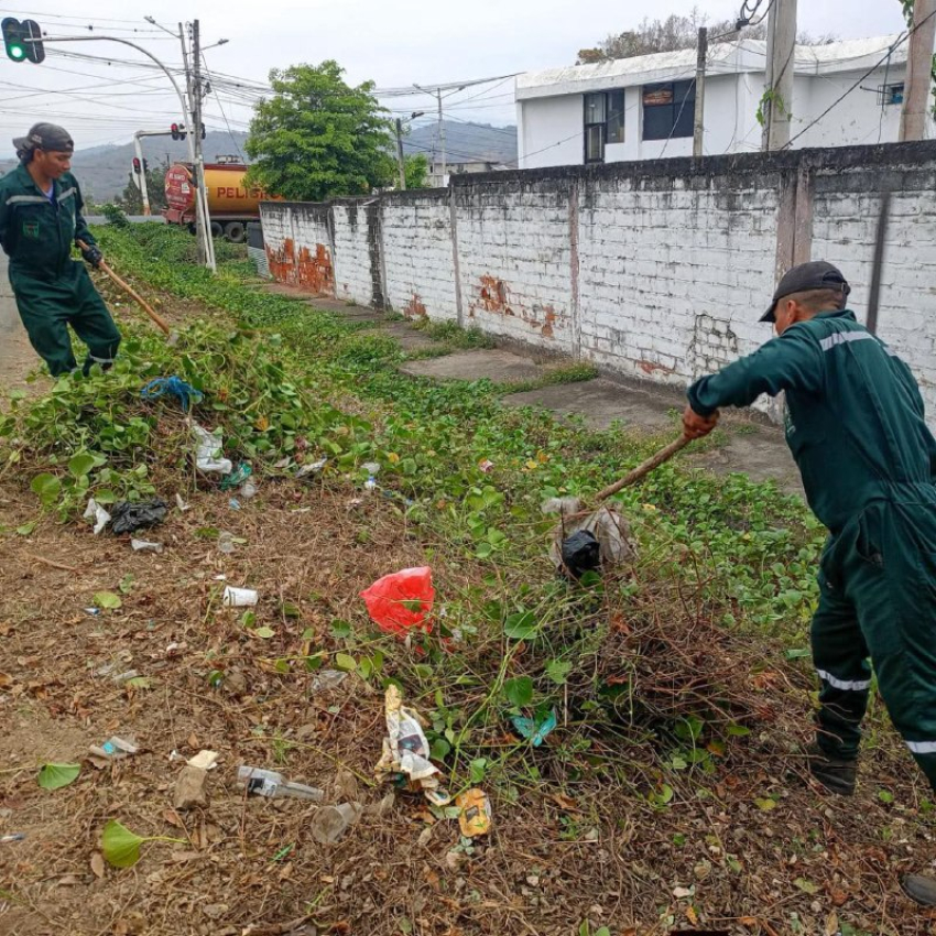 Nuestro equipo de Desechos Sólidos llevó a cabo trabajos de limpieza y retiro de maleza en los alrededores de la calle 24 de Mayo, en las inmediaciones del Comando de Policía. Estas acciones contribuyen a mantener espacios públicos más seguros y ordenados para todos.