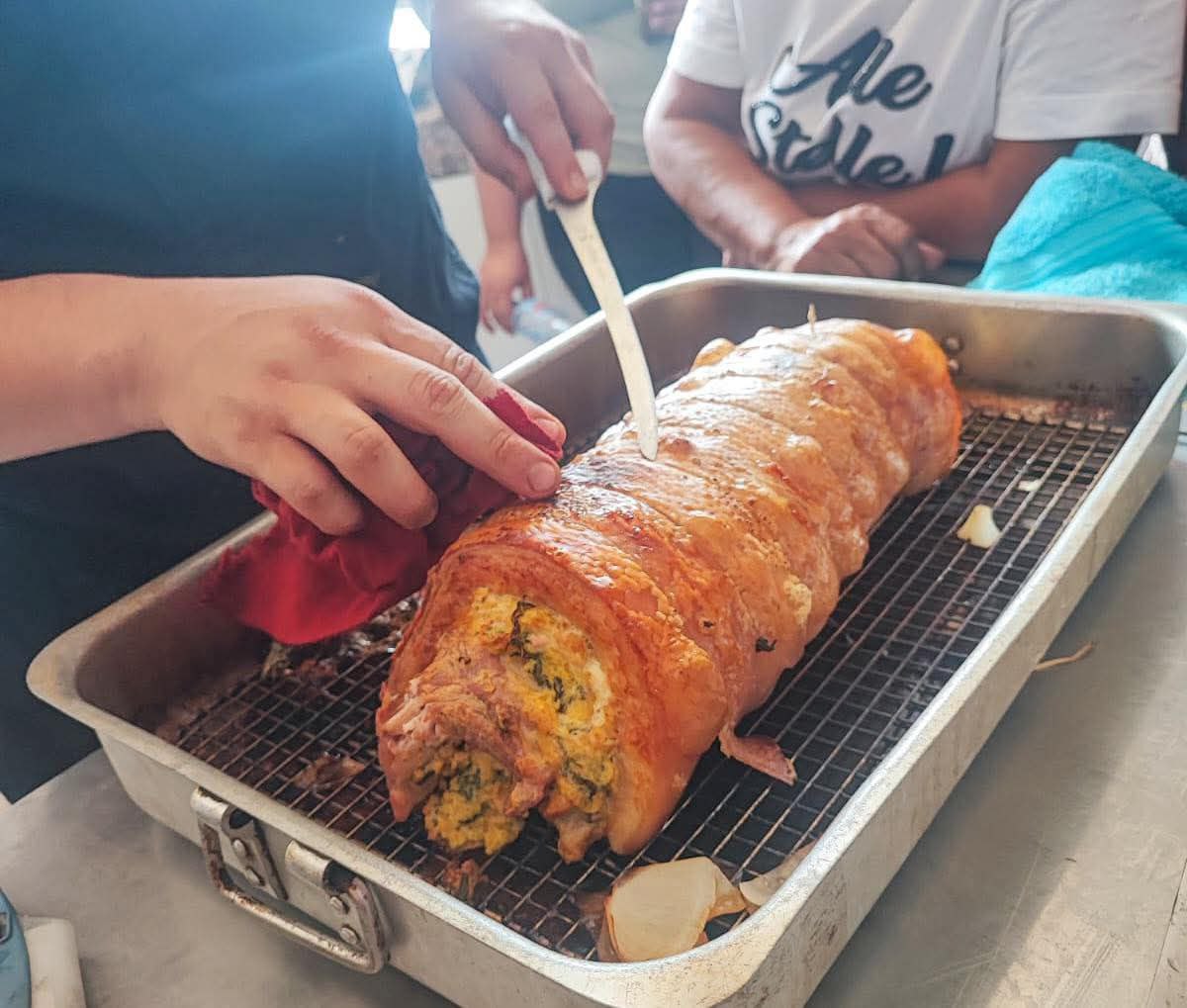 En la última clase, el chef Luis Lino junto a sus alumnas prepararon pavo y panceta al horno, acompañados de tres tipos de salsa, demostrando creatividad, dedicación y espíritu navideño en cada receta.