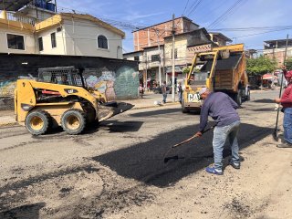 Transformamos la movilidad del sector: Nuestra maquinaria municipal ejecuta la reconformación total de las calles de la ciudadela, incluyendo la colocación de material fresado.