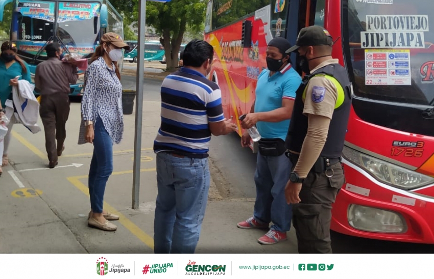 En coordinación con Policía Nacional, se realizan operativos de control en la Terminal Terrestre de cantón, verificando las medidas de bioseguridad tanto a buses de transporte como a pasajeros que arriban a la terminal. #NoTeConfíes
