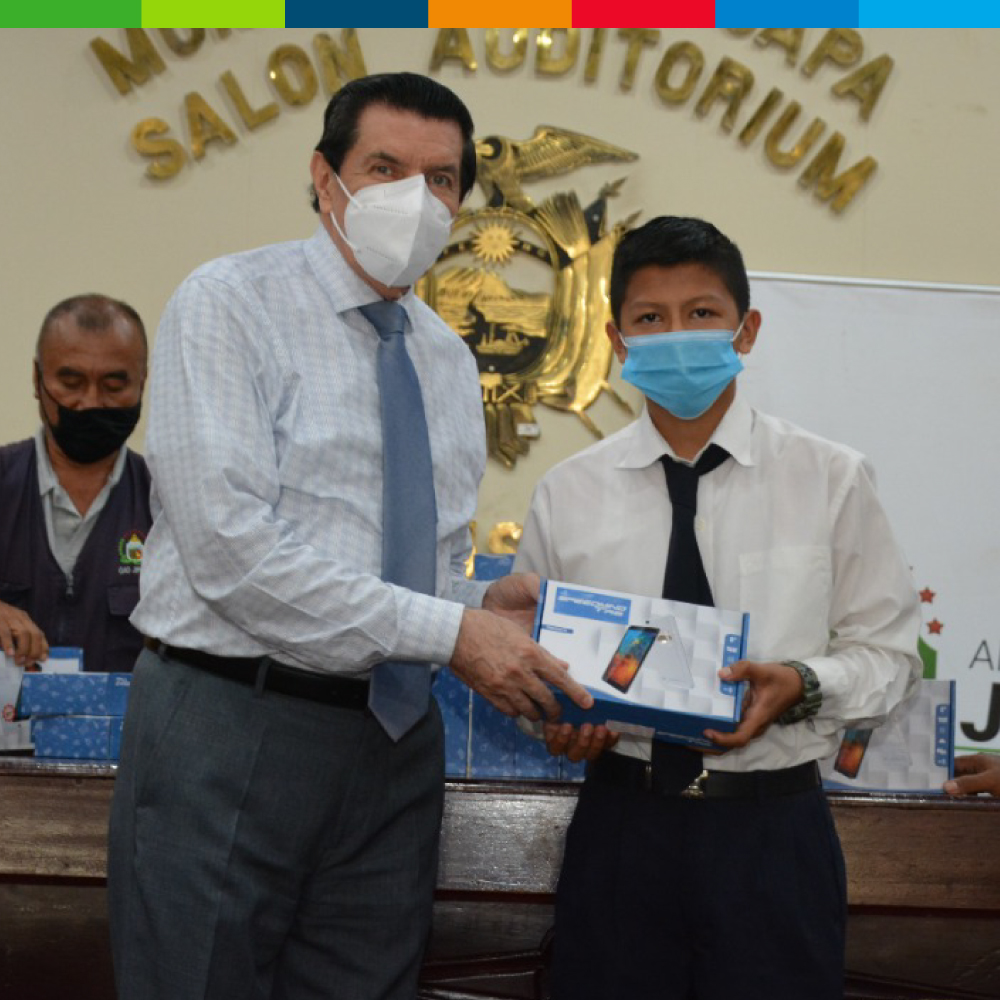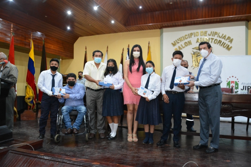 En el salón de la ciudad, el 13 de octubre estudiantes que cursan nivel básico y bachillerato recibieron Tablet por parte del GAD Municipal a través del alcalde Luis Gencon y concejales.