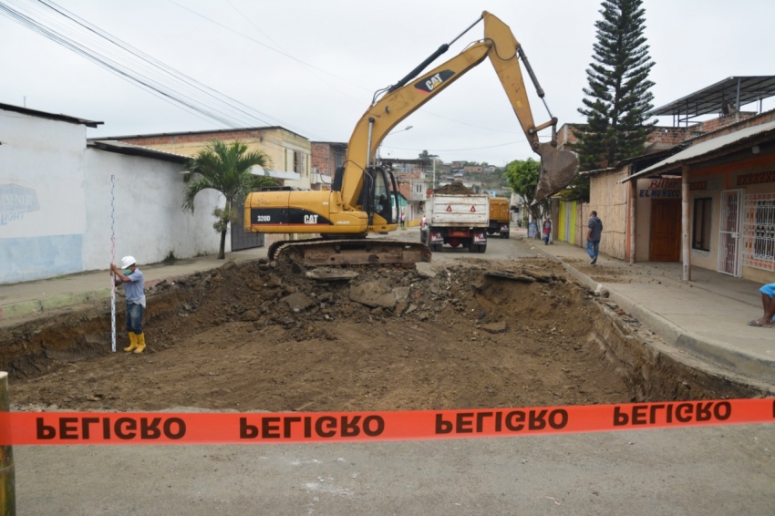En la intersección de la calle Manuela Cañizares de la Parroquia Parrales Iguales iniciaron los trabajos con el cambio de toda la estructura y posterior repavimentación de varias vías urbanas de esta ciudadela con una inversión municipal de $298.743.88