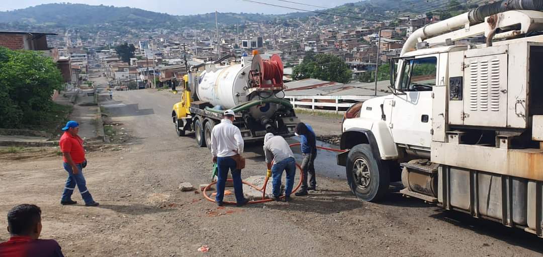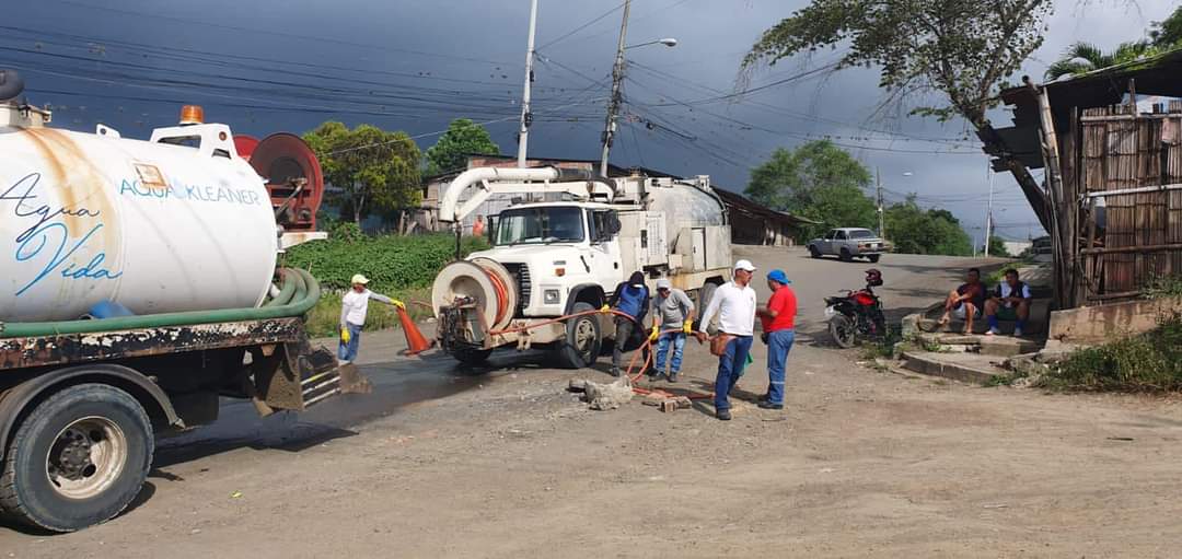 Mantenimiento de pozo de revisión y red de alcantarillado sanitario en la calle Montalvo, desde Abdón Calderón hasta 5 de Junio el cuál estaba colapsado desde hace varios días. El problema fue resuelto en la tarde una vez que se reparó la manguera de presión del vehículo sifonero.