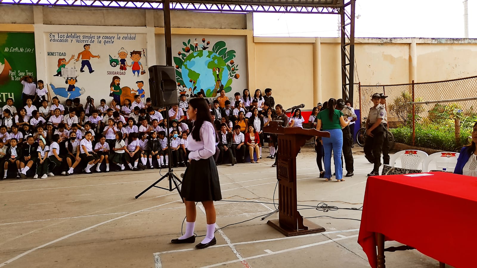 “Yo vivo mi niñez y adolescencia sin violencia” es el nombre de la campaña que se inició en el colegio Alejo Lascano con la presencia de la alcaldesa Dra. Ángela Plúa, estudiantes, autoridades educativas y directivas de la DINAPEN. El Sgto. José Luis Quito de la DINAPEN, institución que ejecuta la campaña, expresó que el objetivo es fomentar la no violencia en los niños, niñas y adolescentes, brindándoles alternativas para que descubran su talento y no se conviertan en víctima de las bandas delincuenciales.