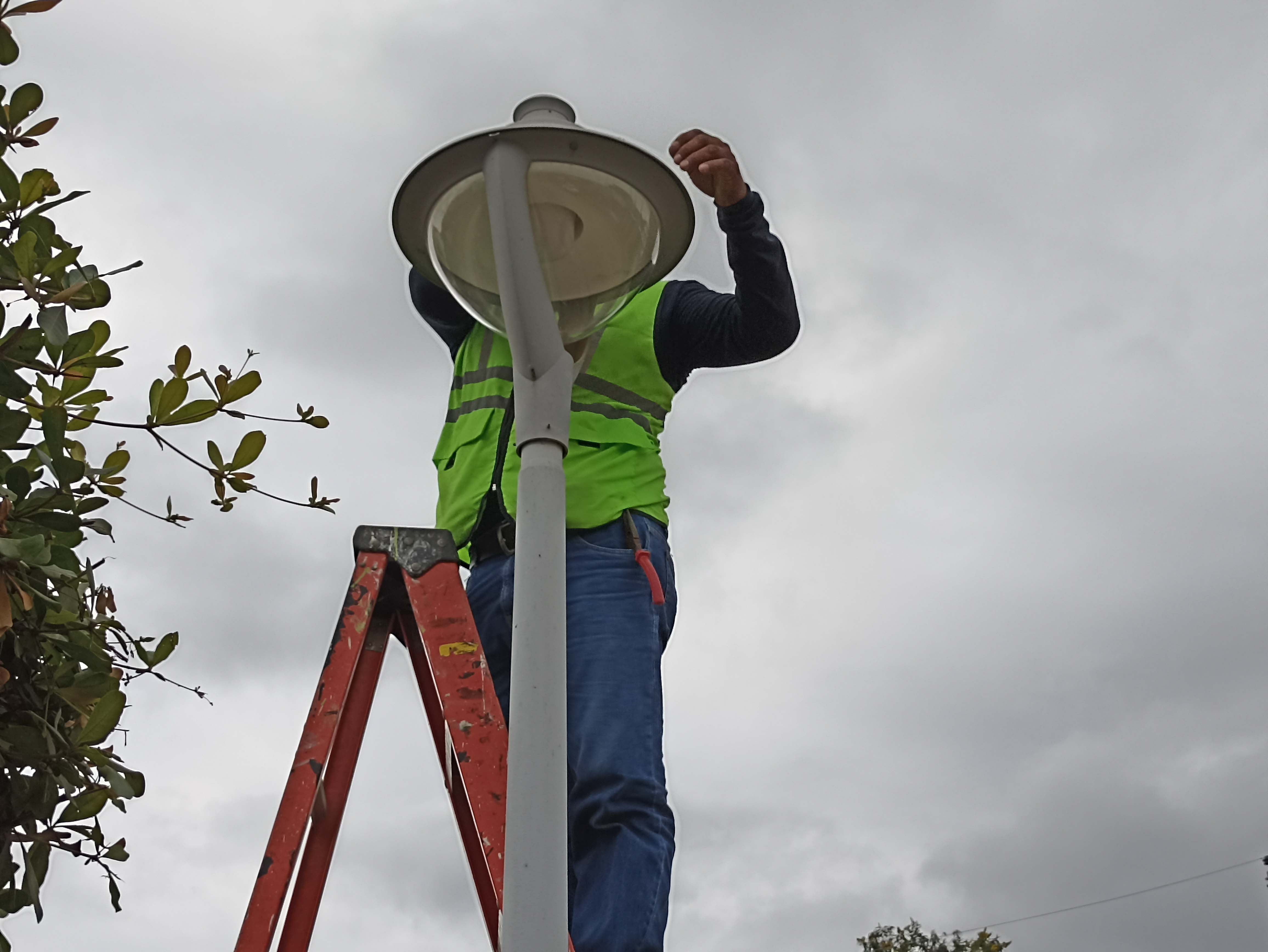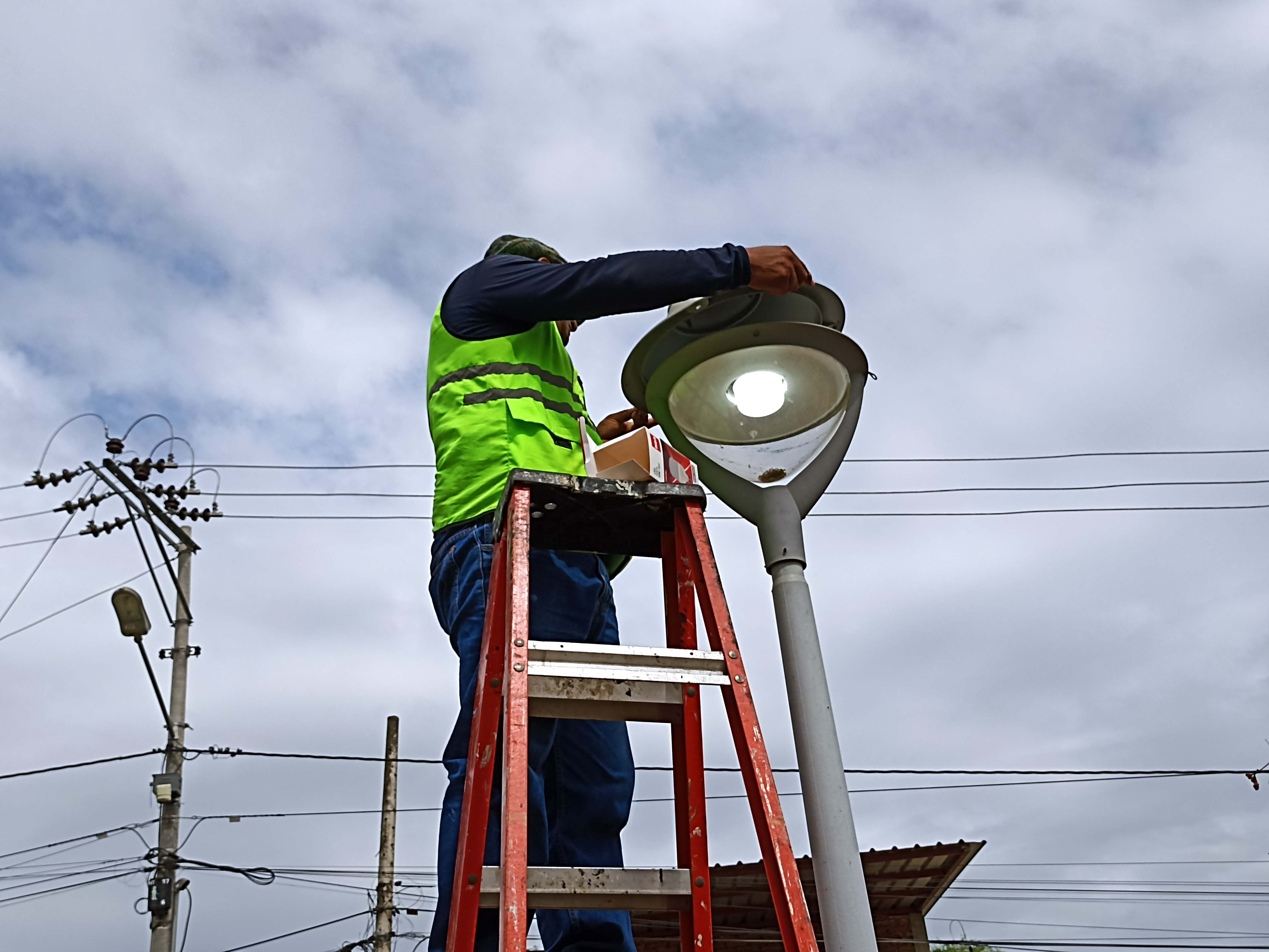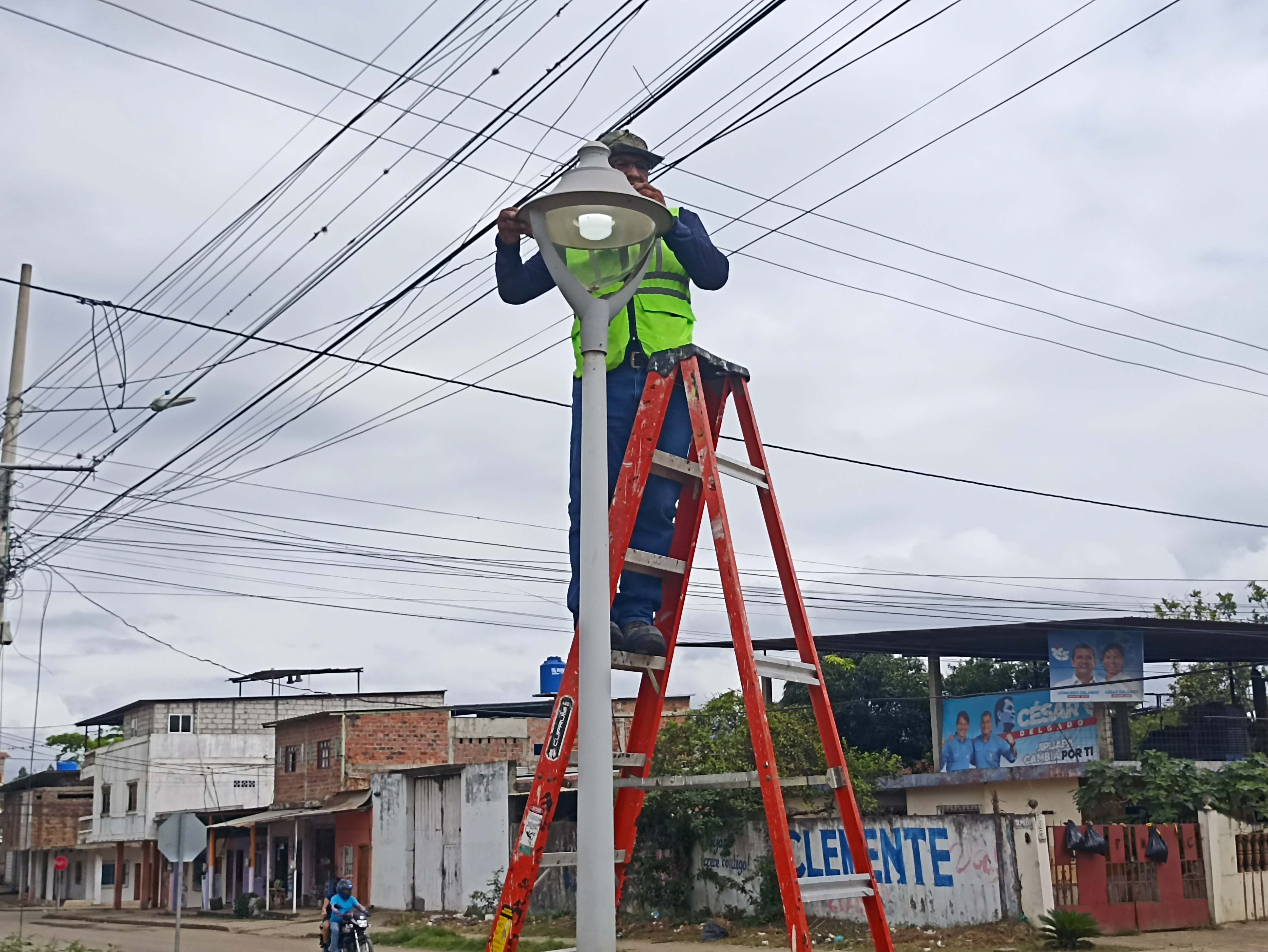 El GAD Municipal a través de Obras Públicas y Coordinación con el concejal Abg. Wilmer González, dió mantenimiento a la iluminación del parque Al Niño, ubicado en la calle Olmedo y Santistevan.
